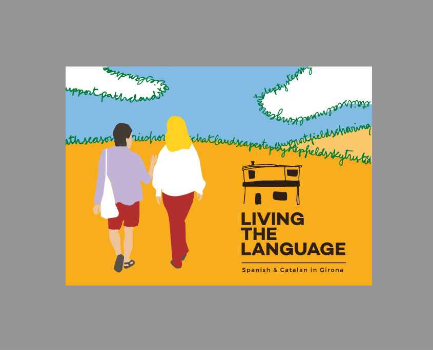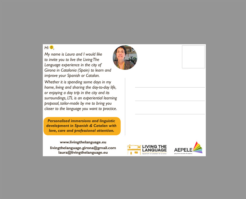 Disseny de postal promocional de la empresa d’idiomes Live the Language